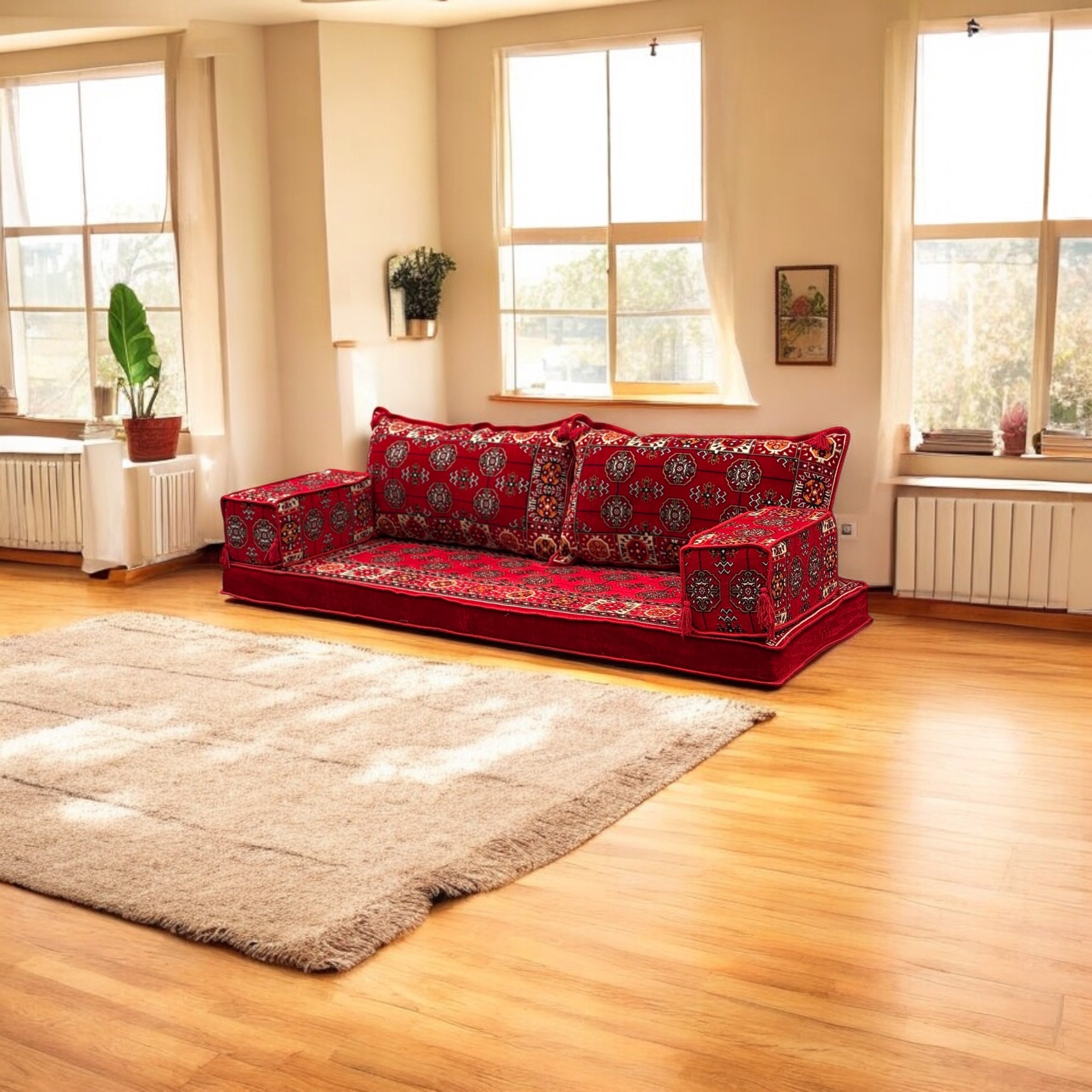 Vintage Inspired Floor Seating Set . Majlis Design with Comfortable Cushions.